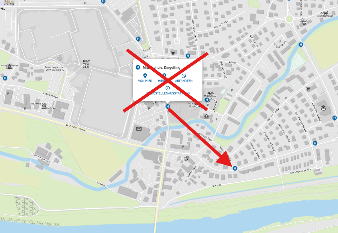 Bitte nutzen Sie die Ersatzhaltestellen: